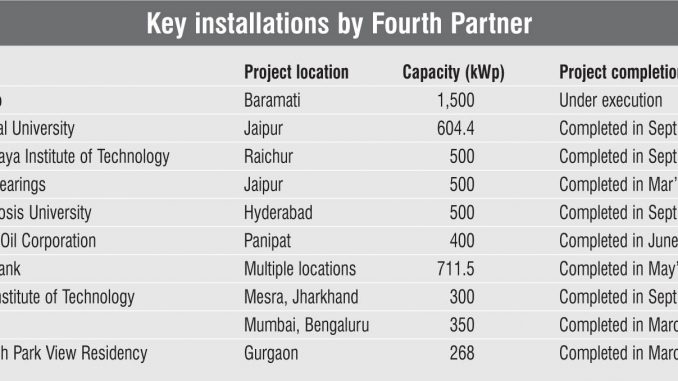 Fourth Partner Energy is one of the emerging rooftop-focussed players in India. Incorporated in 2010 in Hyderabad, the company has delivered around 16 MW of solar rooftop installations so far across 700 locations in the country, with another 20 MW of solar projects in the pipeline.