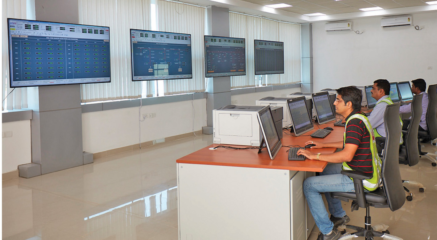 ABB is one of the primary technology partners for the plant with complete automation of the solar plant, which extends to about 18 square km. The developers have used ABB’s Symphony Plus solution for the monitoring and control of the plant. This enables the plant to be controlled at various levels, from the inverter to the substation. In addition, the solution controls the associated dimensions of panel position as well as power management. Also, ABB has provided half of the inverters required at the plant through 288 inverters. ABB has also implemented the supervisory control and data acquisition (SCADA) solution, part of the Symphony Plus package, to enable remote operations and management of the system, especially required for such a large-scale solar power plant. The vastness of data management and operations required can be gauged from the data pouring in on multiple screens inside the SCADA room. The SCADA system connects the panels, inverters, transformers, switchgear, substations and the grid, along with the meteorological stations, to provide a single-window holistic view of the performance of the entire plant.