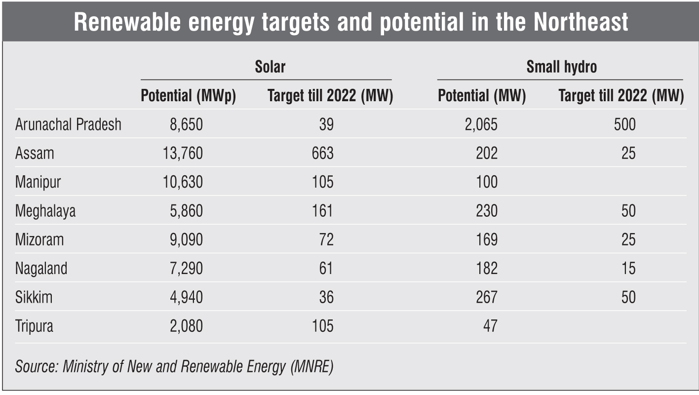 Currently, the installed renewable power capacity in the region is quite low, with a share of roughly 7 per cent of the total power capacity. This has been mainly due to the cost concerns and location-related challenges of the region. The situation is now rapidly changing as the cost of solar power has come down significantly in the past two years. There is greater awareness amongst state departments as well as the general public about the adoption of renewables. That being said, customised incentives and support from the central and state governments will be required in order to encourage public as well as private investments in renewable power generation, and bring this region at par with the rest of the country.