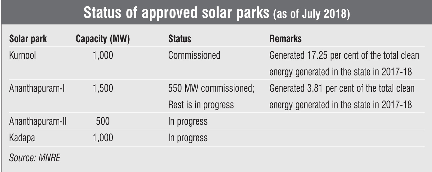 Andhra Pradesh is blessed with a variety of renewable energy resources. It has the potential to develop 44 GW of wind energy and 38 GW of solar energy. The Rayalaseema belt lying in the southern part of the state is particularly favourable for the development of both solar and wind energy. This region with an area of 68,000 sq km (as per the 2011 Census) covers the four districts of Ananthapuram, Chittoor, Kadapa and Kurnool, and is home to the majority of wind power projects in the state. In fact, all four solar parks with a total capacity of 4 GW are being developed in this region.