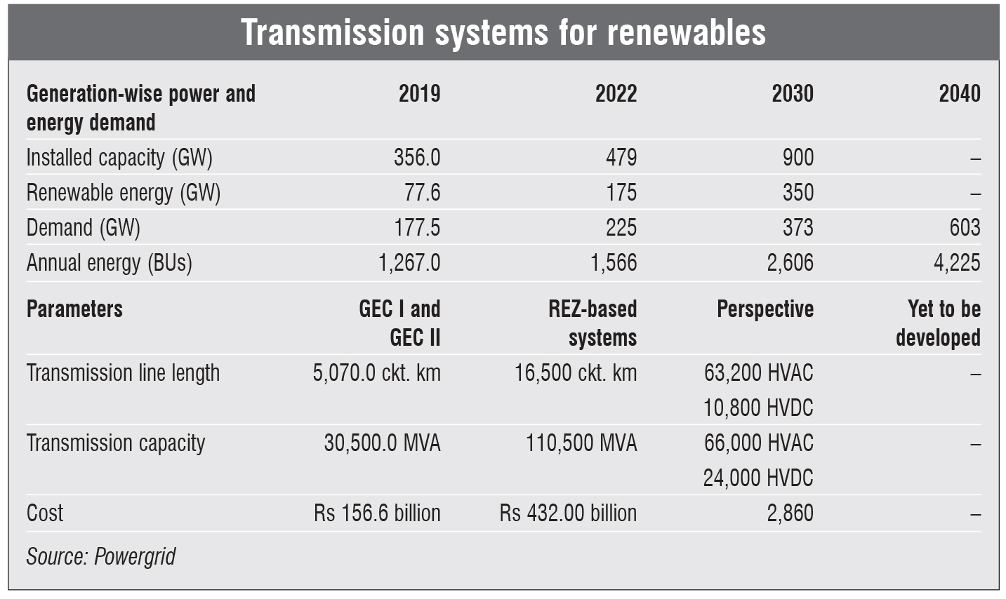 While renewable energy capacity is growing at a fast pace, transmission-related issues have been hampering progress in recent times. There is a mismatch in the construction timelines between transmission capacity addition and renewable energy capacity addition. While renewables have a very short gestation period, transmission projects take much longer. Further, transmission planning can start only after renewable energy bids have closed in order to get an idea about the location of the new capacity. Hence, transmission systems need to match this growing demand, which would otherwise delay renewable energy grid integration.