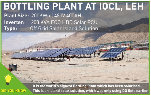 Situated at a high altitude, the region is best positioned to adopt solar energy. Leh, for example, experiences clear sun 320 days in a year. Located at 11,800 feet above sea level, the IOCL bottling plant also supplies LPG to the armed forces and other isolated areas of the region.