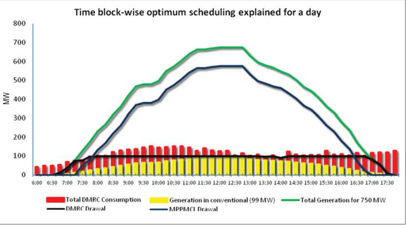 The Rewa project developed “energy contracts”, rather than the traditional “power contracts” prevalent in the country, both in the conventional and non-conventional space. It also developed the concept of “optimum scheduling”, considering the demand profile of DMRC. A metro rail’s demand profile is unique as compared to any other large industrial consumer as it is primarily dependent on the frequency of trains, seasonality in load (there is greater requirement during the summer months due to the high AC load) and difference in loads between weekdays and weekends due to train frequency.