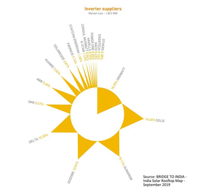 In the twelve-month period ending Sep-2019, India added a record 1,853 MW rooftop solar capacity, which is 17% higher than the same period last year according to the latest report released by BRIDGE TO INDIA. PV inverter suppliers from China are the top players in the solar rooftop sector. Growatt, one of the TOP 3 rooftop solar inverter brands in China, has become the NO.1 solar rooftop inverter supplier in India according to the report.
