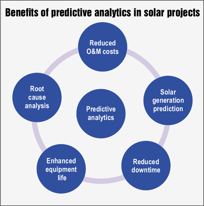 To remove complications, automatic data acquisition can be carried out using embedded sensors integrated with SCADA and web-based monitoring systems. Monitoring systems differ across projects based on plant size, location, distance from O&M facilities, availability and performance ratio guarantees, and financial capability. However, just collecting the right data is not sufficient until it is carefully analysed to improve project output. This requires a connection between data on the digital side and a strong initiative from developers and operators towards performance improvement. Big data analytics with proper AI and machine learning tools are used to analyse this “high volume of high variety data with high velocity”.