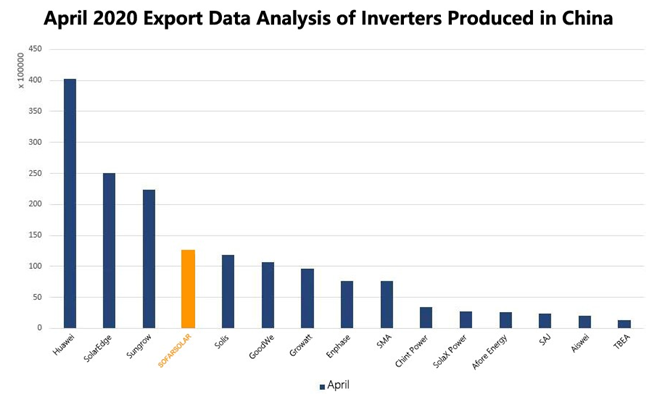 At the beginning of 2020, the unexpected COVID-19 has disrupted the development pace of many photovoltaic enterprises. In the chaos, the performance of SOFARSOLAR is eye-catching. April’s export data shows that SOFARSLOAR has leapt to the third place in the monthly list of inverter brand export amount in China, which has renewed the international market position of SOFARSOLAR.