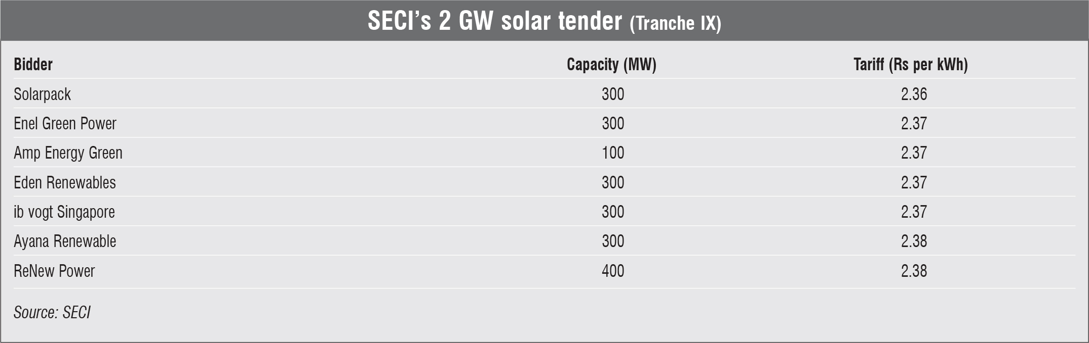 Tender Results: Winners of capacities auctioned recently Winners of capacities auctioned recently July 17, 2020