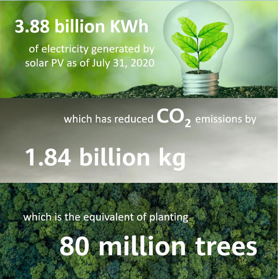BaofengPV Park has generated 3.875 billion kWh of electricity (*since connected to the grid until July 31 2020), reducingCO2 emissions by 1.841 billion kg, the equivalent of planting 80 million trees.