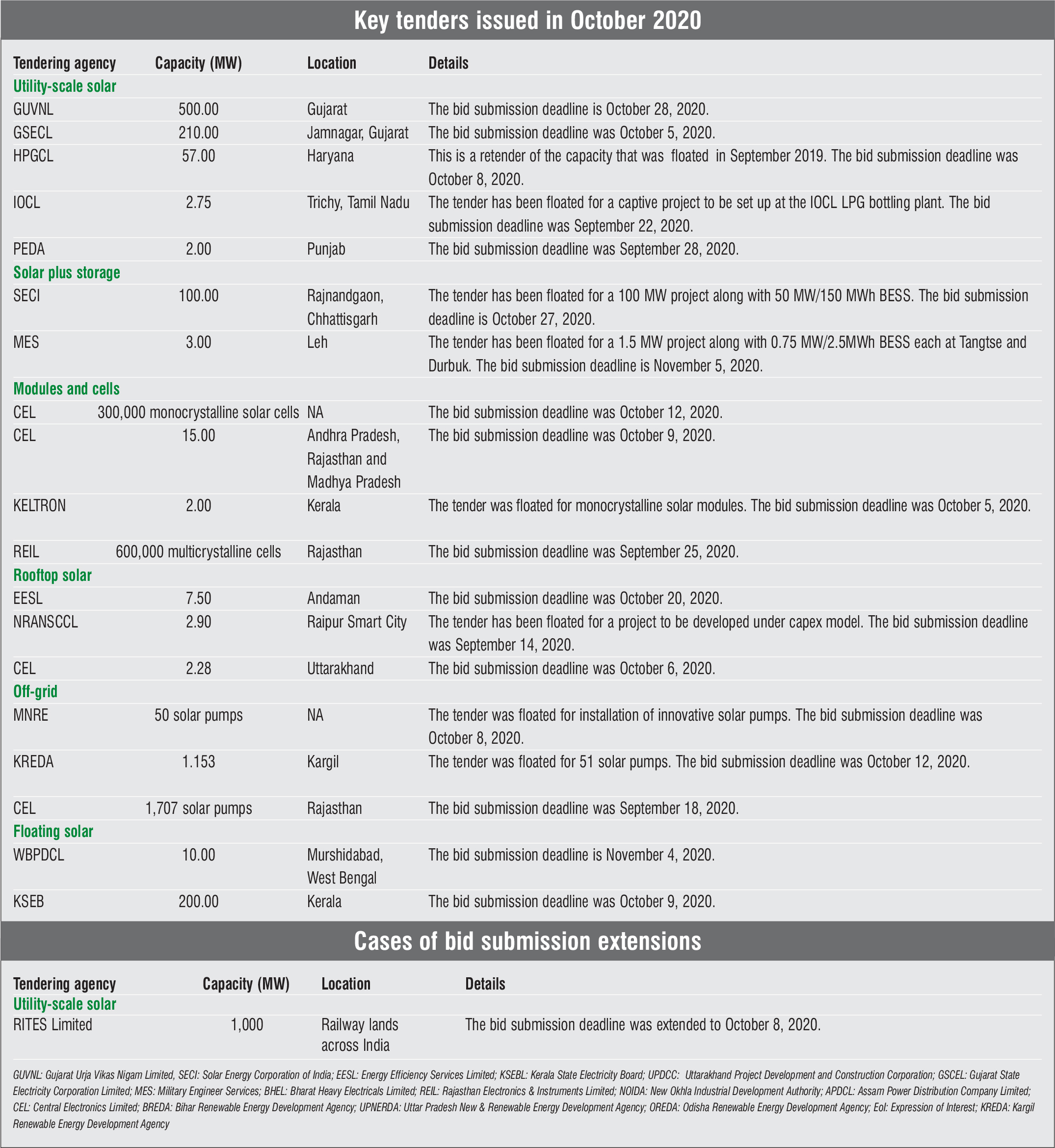 Tender Update: Recent issues and bid extensions