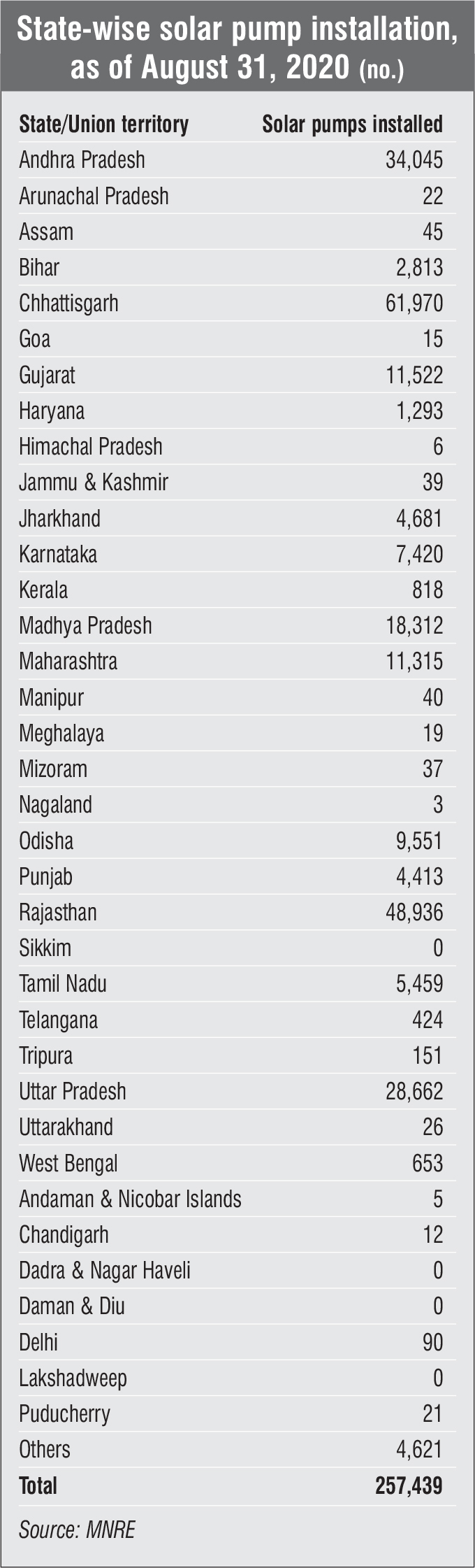 In line with this decision, the MNRE had set guidelines for the installation of innovative stand-alone solar pumps for demonstration in June 2020. These guidelines were drafted with the aim of helping improve the efficiency and performance of solar pumps while reducing costs. As per the guidelines, field tests would go on for the first year of installation. The guidelines are applicable to all Indian innovators, manufacturers and service providers who wish to install innovative stand-alone solar pumps in the country under the schemes offered by the MNRE. The guidelines further elaborate on specific issues under four categories: call for expressions of interest (EoIs), evaluation of applications, demonstration of the innovation, and the adoption of technology by the MNRE.