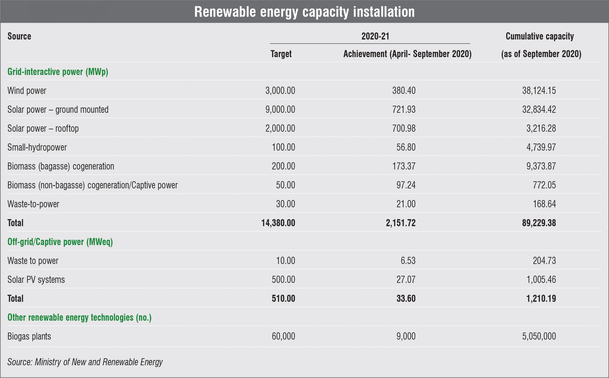 Renewable Energy Statistics: Source-wise capacity installation and generation Source-wise capacity installation and generation November 14, 2020