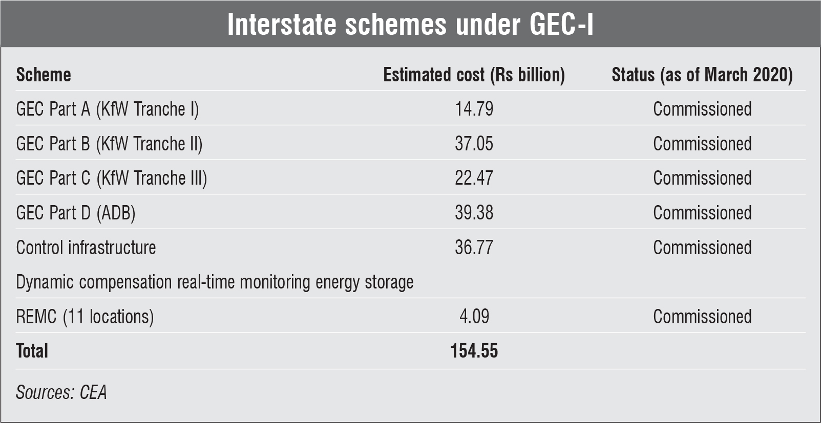 The deadline for the completion of the intra-state and interstate transmission system was March 2020. The Central Electricity Authority (CEA) has reported that all parts of the interstate GEC have been completed. In addition, the control infrastructure, energy storage systems, real-time monitoring system and REMC have been commissioned within schedule. However, the intra-state schemes under the GEC have not been commissioned and they are at various stages of tendering and award process. Though some states have awarded contracts for all components of the project, many are yet to do so.