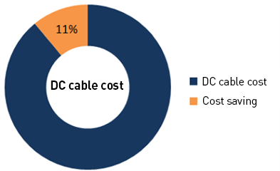 Considering the cabling optimization situation of the two schemes and the difference in cable prices. Option one- when the number of strings is reduced by 33% – calculates that the DC cable cost of the project can be 11% lower.