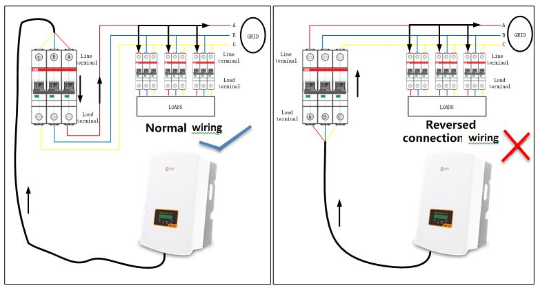 There are many circuit breakers with a margin of breaking capacity, so it is often seen that some circuit breakers are nominally capable of reverse wiring. Solis recommends to very all AC wiring are normal and not in a reverse wiring state for ongoing safe and stable operation of your system.