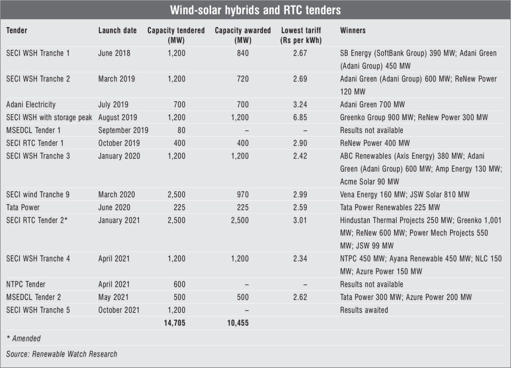 India is a country rich in renewable energy resources that can be utilised for power generation. While a large part of the country receives high solar irradiation, some states have favourable wind speeds. The intermittency issues associated with solar and wind power generation and the limited hours of availability pose problems in grid integration. To overcome these issues and combine the benefits of both sources, there is an emerging interest in wind-solar hybrids. Wind turbines and solar panels can be co-located at good wind sites to result in a higher combined utilisation of renewable energy. Round-the-clock (RTC) power is also being explored by bundling renewable generation with other balancing sources such as thermal power and energy storage.