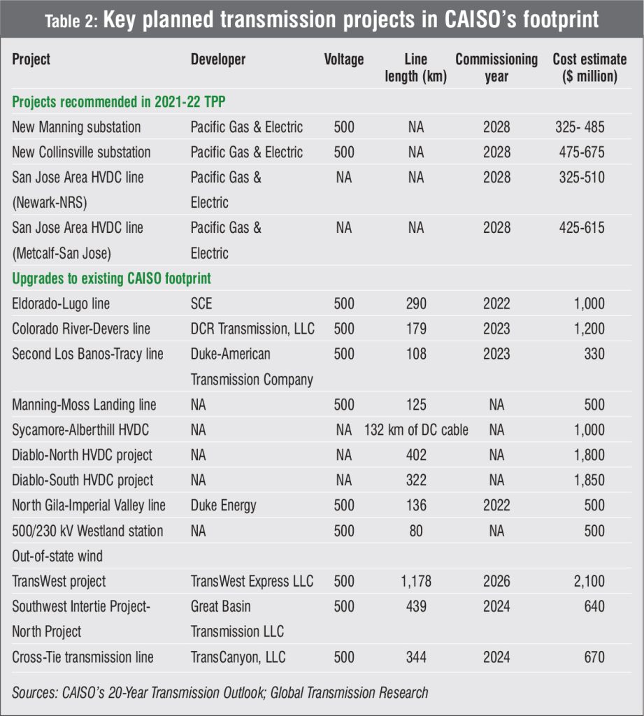 To interconnect out-of-state wind to the CAISO grid, it has identified new transmission projects to link 9,900 MW of capacity from Wyoming (4,685 MW) and New Mexico (5,215 MW). Further, another 2,100 MW from the northwest (1,500 MW) and Baja California (600 MW) will be connected to the existing transmission. The identified transmission projects include Southwest Intertie Project-North, Cross-Tie, Robinson-Eldorado, TransWest Express, and additional transmission for more wind resources from Wyoming/Idaho and the New Mexico area.