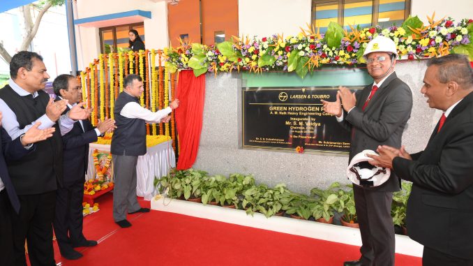 Larsen & Toubro (L&T) has inaugurated a green hydrogen plant at its AM Naik heavy engineering complex at Hazira, Gujarat. The plant will be responsible for generating 45 kg of green hydrogen daily for captive consumption in the company’s manufacturing complex. The plant is structured to have an electrolyser capacity of 800 kW, with 380 kW Alkaline and 420 kW PEM technologies. The plant will be powered through a 990 kW peak DC rooftop solar plant and a 500 kWh battery energy storage system. A 380 kW Alkaline electrolyser was installed as part of the first phase of the project, with a 420 kW PEM electrolyser and solar plant capacity augmentation to 1.6 MW peak DC planned for future expansion.