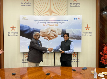 The Indian Renewable Energy Development Agency Limited (IREDA) and the Bank of India (BoI) have signed a Memorandum of Understanding (MoU) for co-lending, co-origination, and loan syndication for renewable energy projects. The MoU will allow IREDA and BoI to collaborate on renewable energy projects such as small hydro and ethanol. Both organisations will also work to lock in interest rates for IREDA borrowings for three to four years.