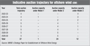 The central government’s announcement of a 37 GW bidding trajectory for offshore wind power up to 2029-30 could be a potential game changer for the segment. In line with this, the Ministry of New and Renewable Energy (MNRE) is expected to release an offshore wind tender in the next three to four months to lease 4 GW of wind energy blocks off the coast of Tamil Nadu. In a separate development, the ministry has released a strategy paper outlining various development models for utility and open access offshore wind power projects along with viability gap funding (VGF) and other financial incentives.