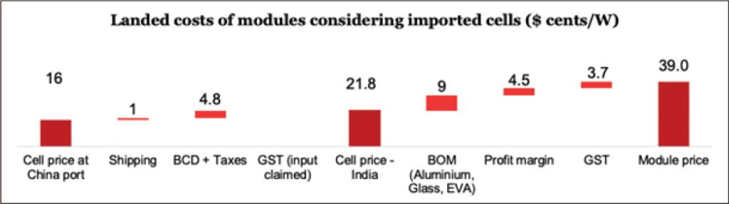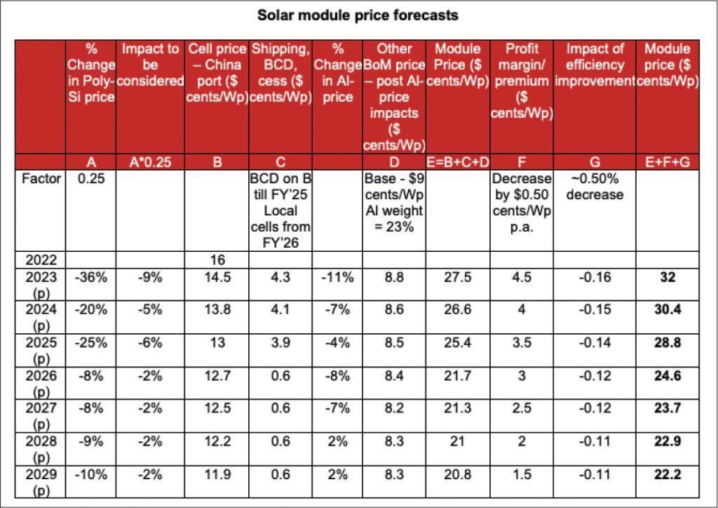 Module assembly in India using imported cells shall remain the prevalent mode till new cell capacities, including capacities awarded under the PLI scheme. Two years from now, the prices of solar cells manufactured in India shall be the driver for module price reduction.