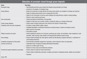 financial year. It will cover details such as the amount raised under green deposits during the previous financial year, a list of green activities and projects to which the proceeds have been allocated, the amounts allocated to eligible projects, and copies of the third-party verification report and impact assessment report.