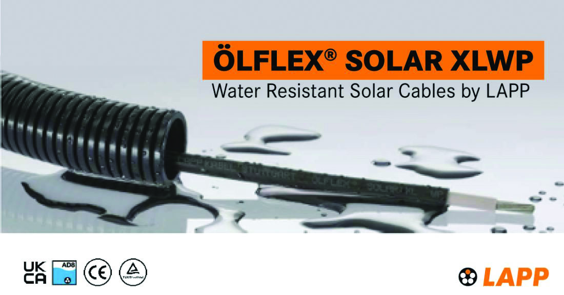 LAPP has launched the ÖLFLEX® SOLAR XLWP cable, a permanent waterproof solar cable designed to perform in challenging solar environments. Its electron-beam crosslinked design guarantees continuous operation even when submerged, making it ideal for flood-prone areas or high-moisture regions. This cable offers unparalleled longevity, withstanding heat, ozone, UV radiation and mechanical stress. It can also withstand unprotected burials in professionally constructed trenches, having passed rigorous UL 854 impact tests. These features make it ideal for subterranean environments with severe and long burrowing times. Certified by the International Electrotechnical Commission, the European Committee for Electrotechnical Standardisation and AD8, the cable meets stringent environmental standards, including flame resistance and low toxic gas emissions during fires. The certified cables minimise technical problems and make maintenance easier by guaranteeing compatibility with other components. Furthermore, they provide long-term system reliability by lowering the risk of non-compliance and expediting the project deployment and approval processes. The ÖLFLEX® SOLAR XLWP features colour-coded stripes to prevent polarity errors and meter markings on the cable sheath for convenient measurement.