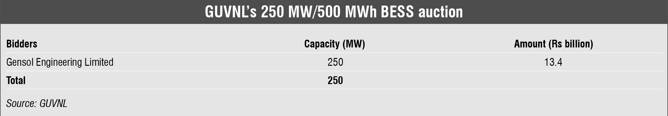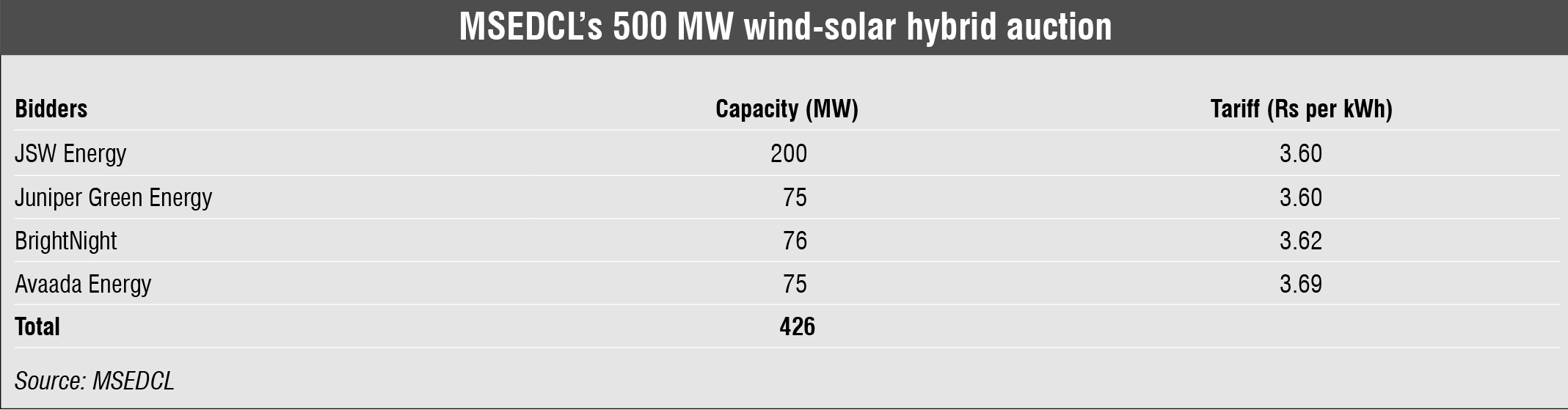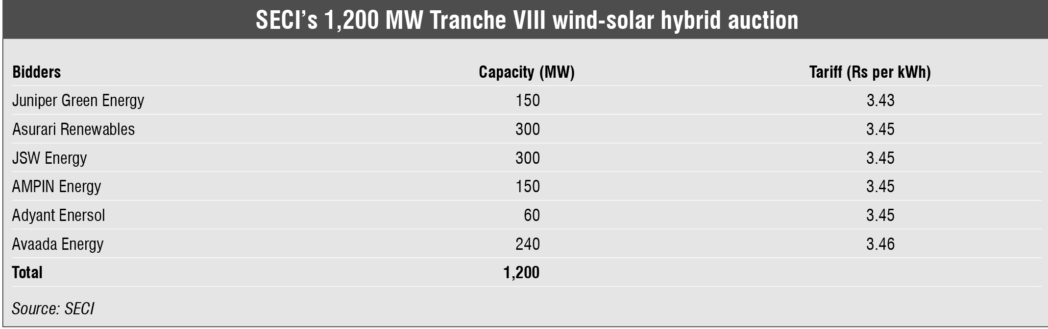Tender Results: Winners of recent capacities auctioned