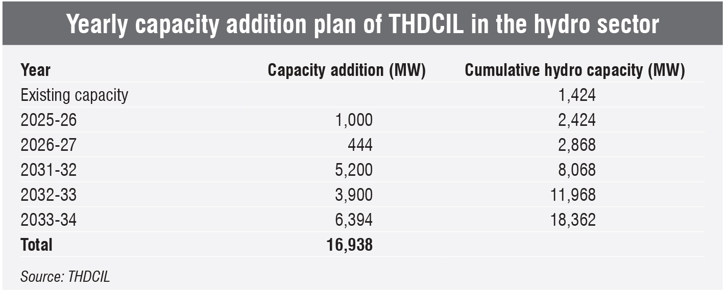 THDCIL has an ambitious capacity addition plan. By 2033-34, it aims to achieve a total hydro capacity addition of 16,938 MW, including PSPs, bringing its total capacity to 18,362 MW.