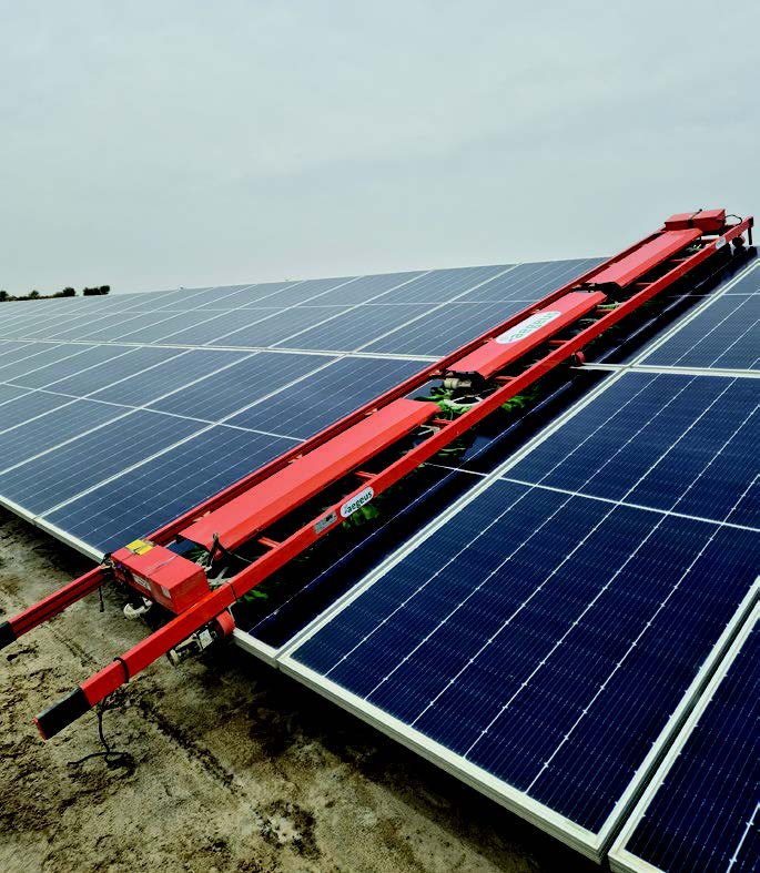 The scarcity of water and the high cost of purchase also led to changes in O&M techniques. The operations team had earlier planned for 24 cycles of wet cleaning in a year, but had to transition to semi-automatic cleaning (the plant was not designed to be compatible with fully automatic cleaning). “With this transition, we were able to achieve a 75-80 per cent reduction in water usage, lower diesel costs for tractors, and a reduction in soiling losses as well. Due to these trends, overall, our total revenue increased by 1 per cent,” says Jadhav. The plant currently uses both dry and water-based semi-automatic cleaning, with three to four water-based cleaning cycles reserved per year.