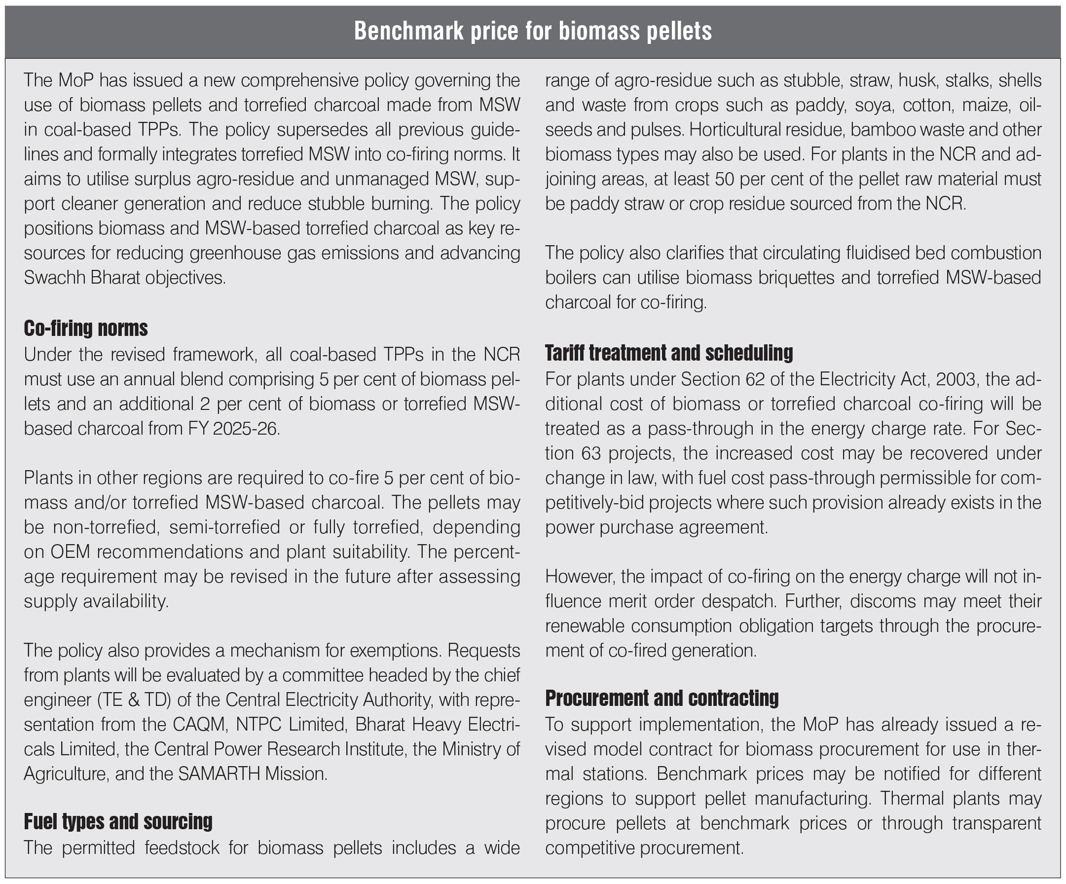 Recently, in November 2025, the MoP issued a comprehensive framework that supersedes all earlier orders. The updated policy integrates biomass pellets and torrefied MSW-based charcoal into a unified approach, linking residue utilisation, air quality improvement and decarbonisation with clear norms for blending, procurement and compliance.